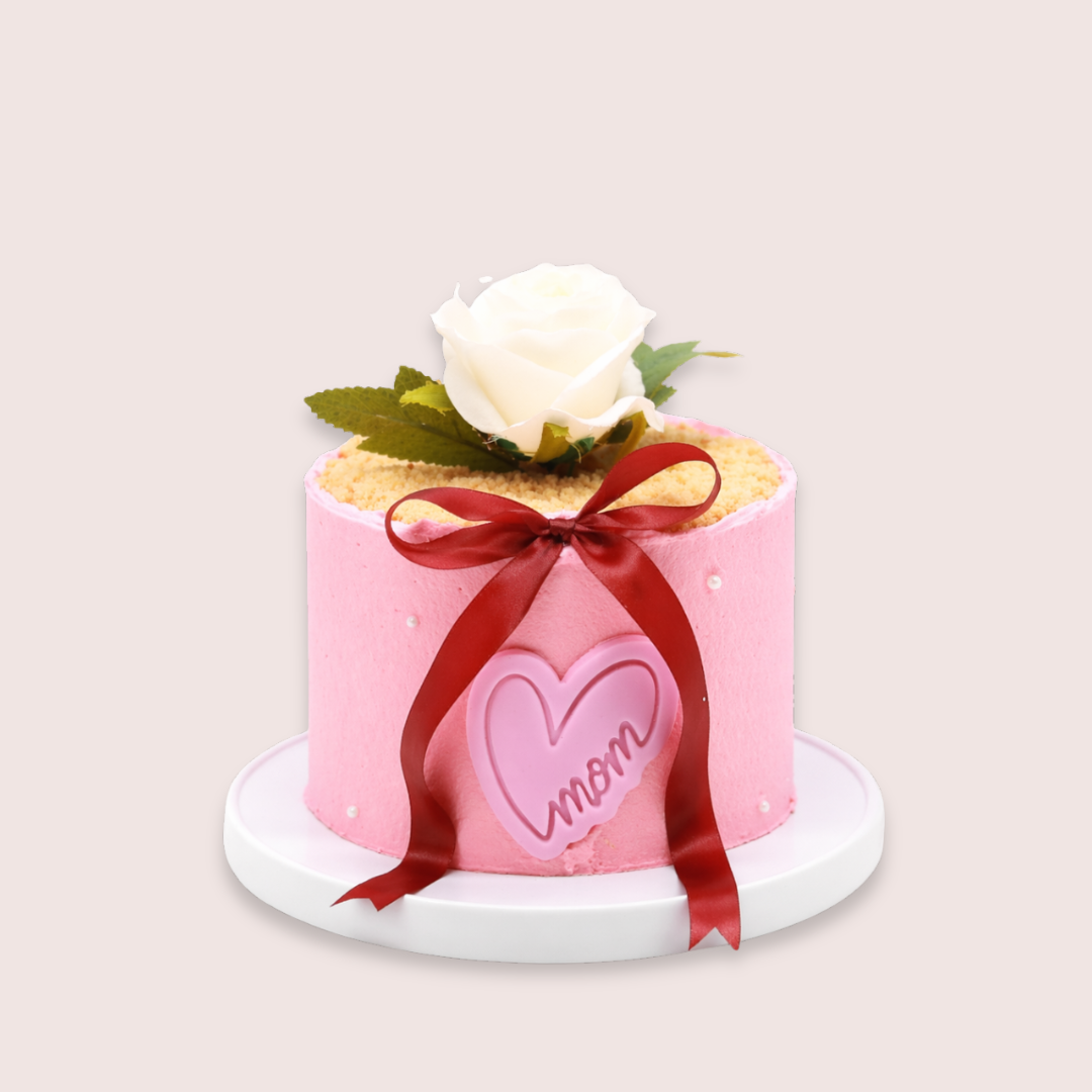 Celebrate Mom with our elegant Blush Rose Mother’s Day Cake — a soft pink buttercream cake finished with a delicate rose, ribbon detail, and a heartfelt “Mom” topper.