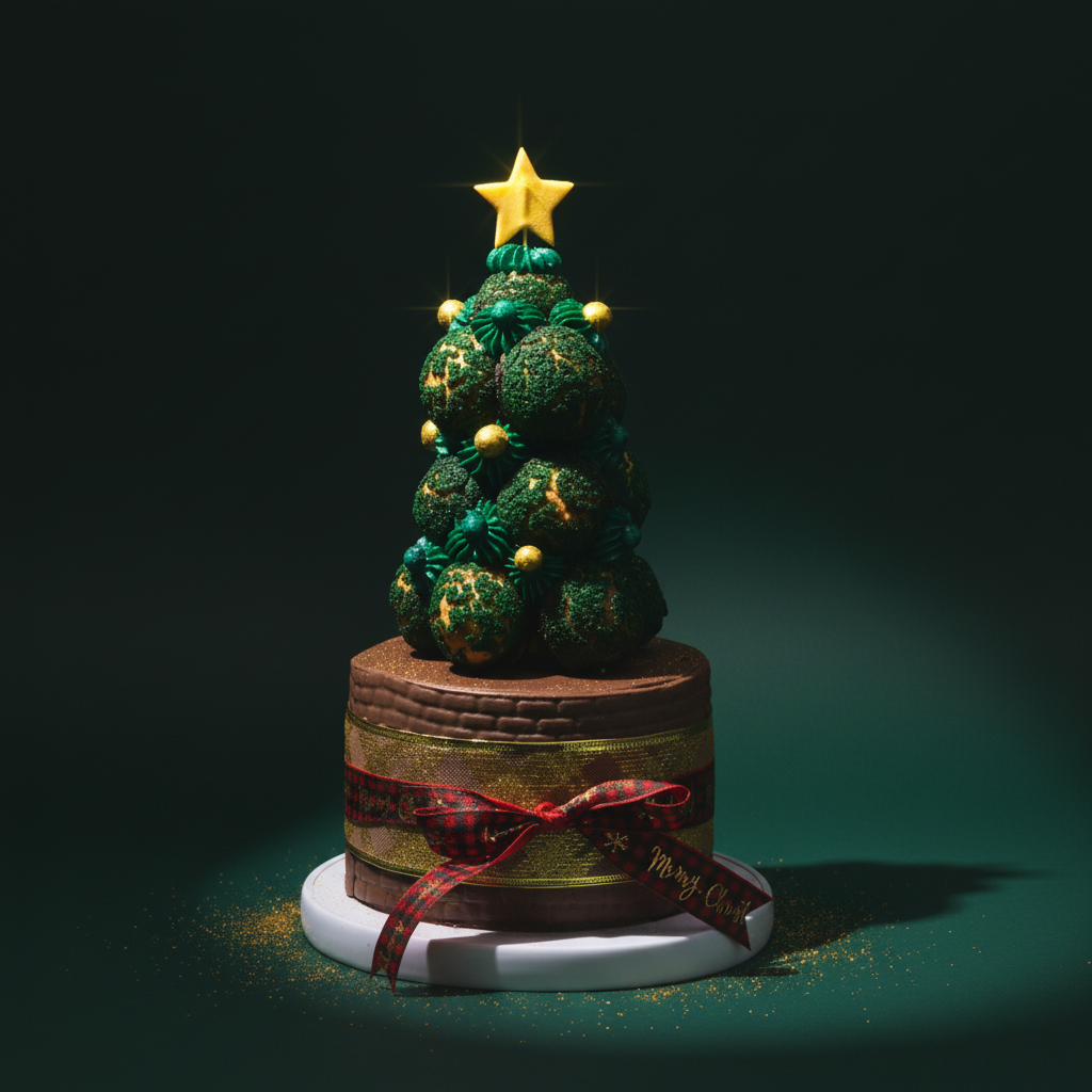 A true showstopper for the festive season — our Christmas Choux Tree is where elegance meets indulgence! Crafted with layers of flavour and festive flair, this masterpiece begins with a rich chocolate cake filled with silky caramel and wrapped in smooth chocolate buttercream and a festive fondant ribbon and bow.