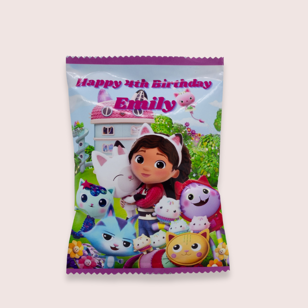 The Gabby’s Dollhouse Party Packet is the purr-fect goodie bag for little fans of Gabby and her kitty crew! Bursting with colour, charm, and personalised just for your celebration, this packet is filled with a delightful mix of chocolates and sweets — making it the ultimate favour for any Gabby’s Dollhouse–themed party.