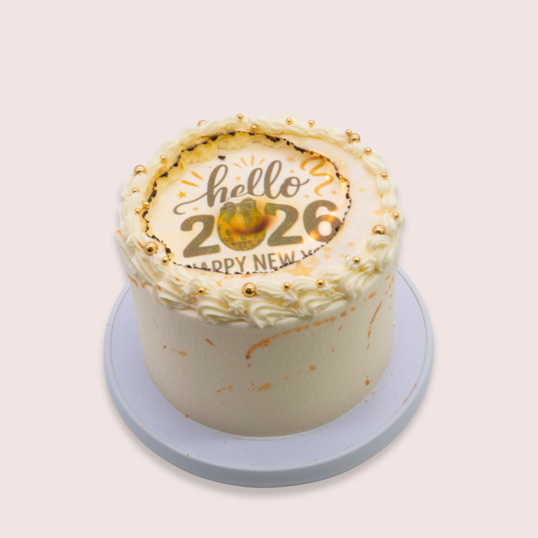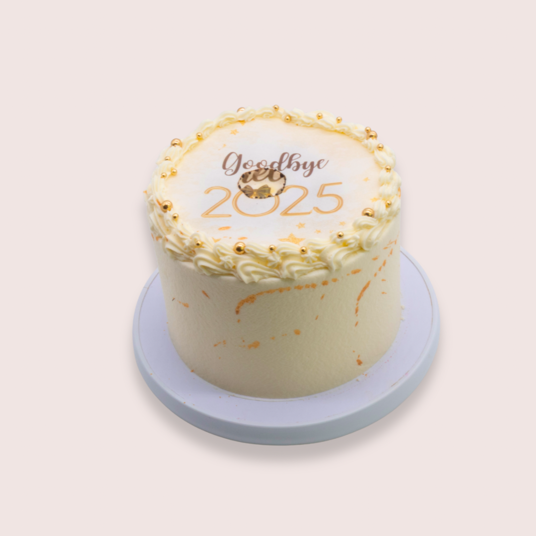 Finished in elegant vanilla buttercream, delicate gold accents, and celebratory detailing, this cake is perfect for New Year’s Eve countdowns, intimate gatherings, or anyone who loves a little theatre with their dessert.