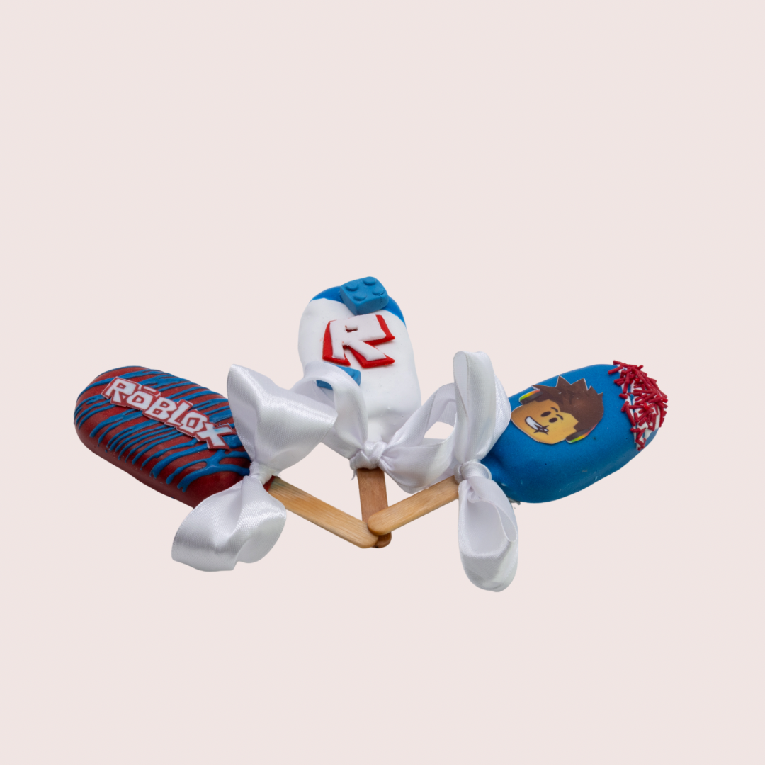 These bright and playful cakesicles are inspired by the blocky, pixel-perfect world of Roblox. Hand-decorated with the iconic βRβ logo, favourite avatars, and bold red-and-blue designs, each treat is finished with satin bows for that extra festive touch.